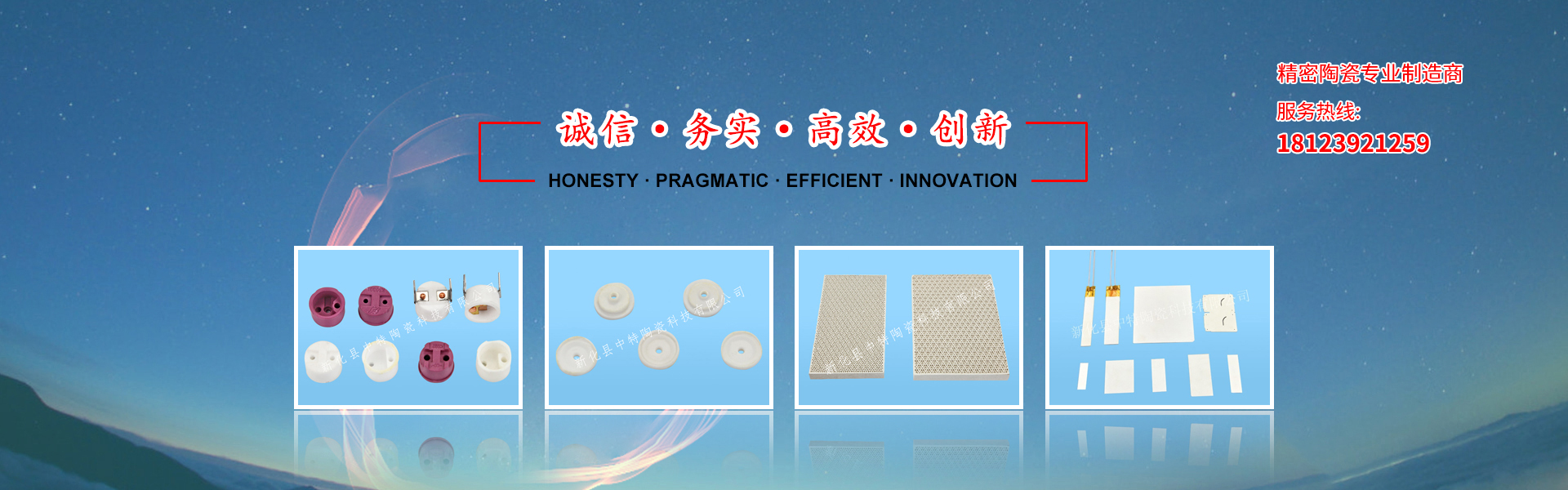 自創(chuàng)辦以來,本公司堅持自主創(chuàng)新,憑技術力量雄厚、設備精良、工藝先進,一直致力精密陶瓷領域的研究、開發(fā)和生產(chǎn)。已通過ISO9001質量管理體系認證,擁有完全自主知識產(chǎn)權的發(fā)明專利九項。專業(yè)生產(chǎn)各種規(guī)格的氧化鋁瓷、滑石瓷、增韌瓷、氧化鋯、氮化鋁等精密陶瓷。主要產(chǎn)品有:溫控器陶瓷、蜂窩陶瓷、氧化鋁基片、陶瓷金屬化、陶瓷軸、氧化鋯陶瓷、發(fā)熱陶瓷、異型結構陶瓷等多種類,產(chǎn)品已廣泛應用于微電子、光通訊、生物、醫(yī)學、海洋、環(huán)保、機械、電工、鐘表、新能源等領域......